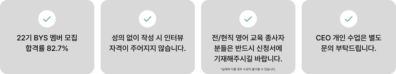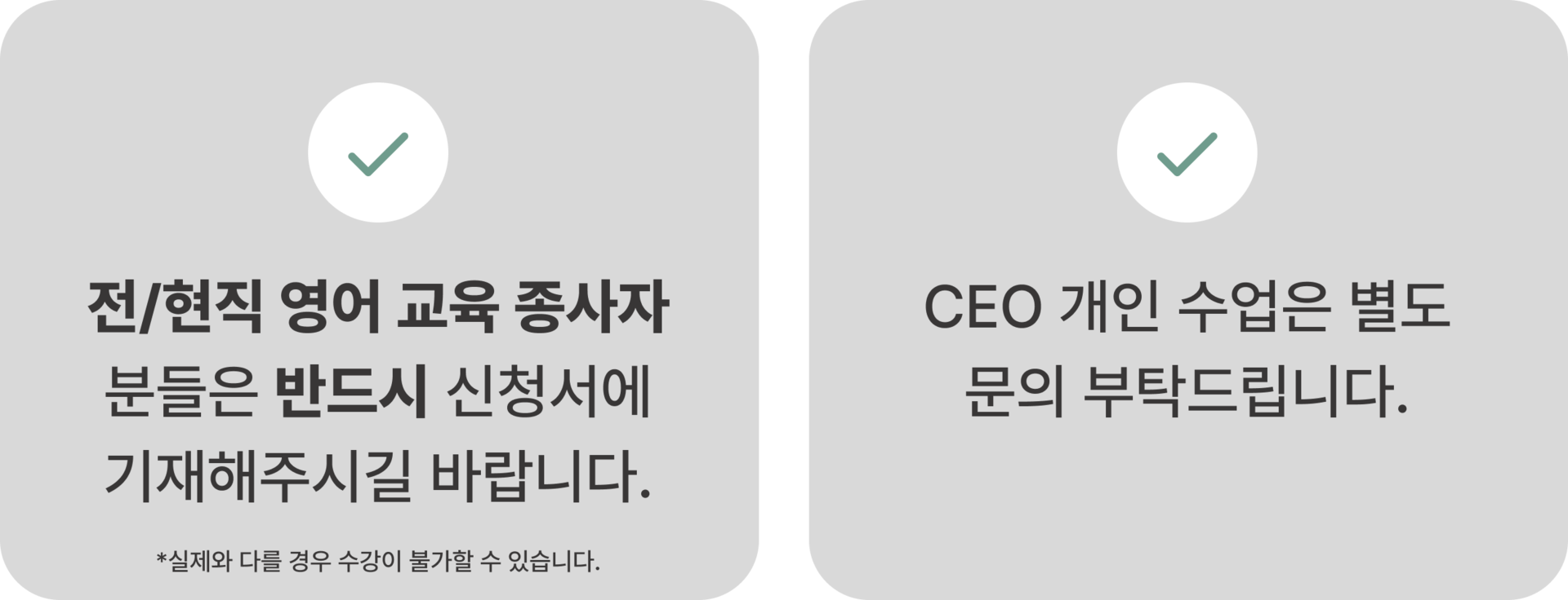 *전/현직 영어 교육 종사자 분들께서는 신청서에 기재 부탁드립니다. 실제와 다를 경우 수강이 불가할 수 있습니다.