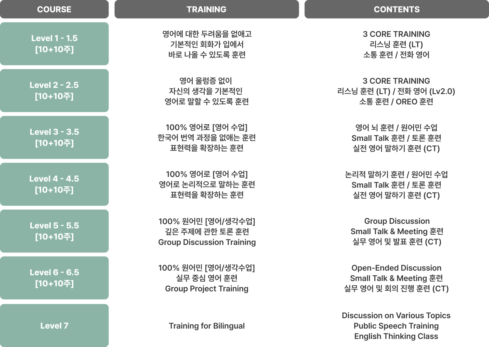 *모든 수업은 주1회 진행되며, 클래스별 선생님이 상이합니다.