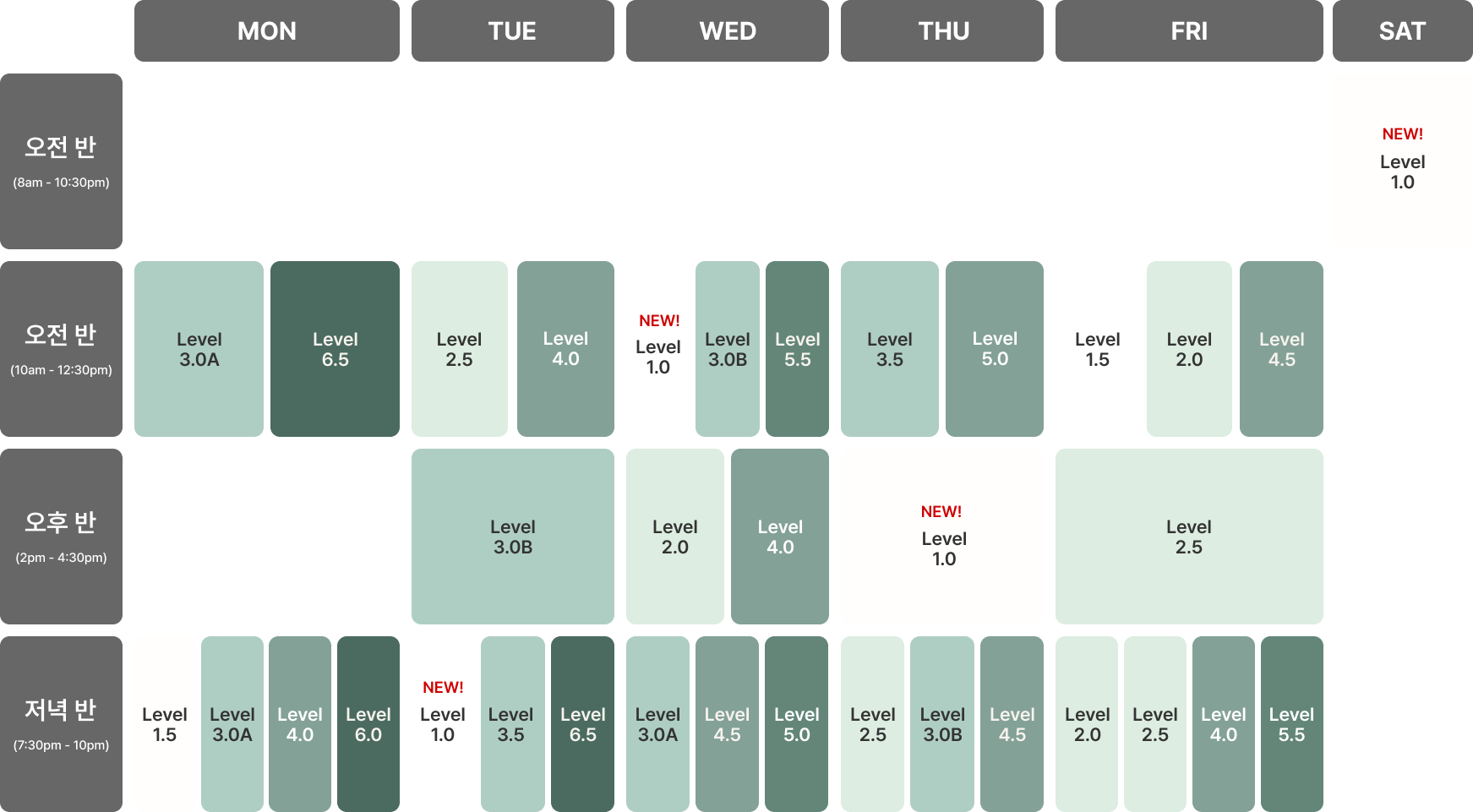 *수업 시간은 한국 표준 시간 (KST)이며, 모든 클래스는 사정에 따라 변경될 수 있습니다.